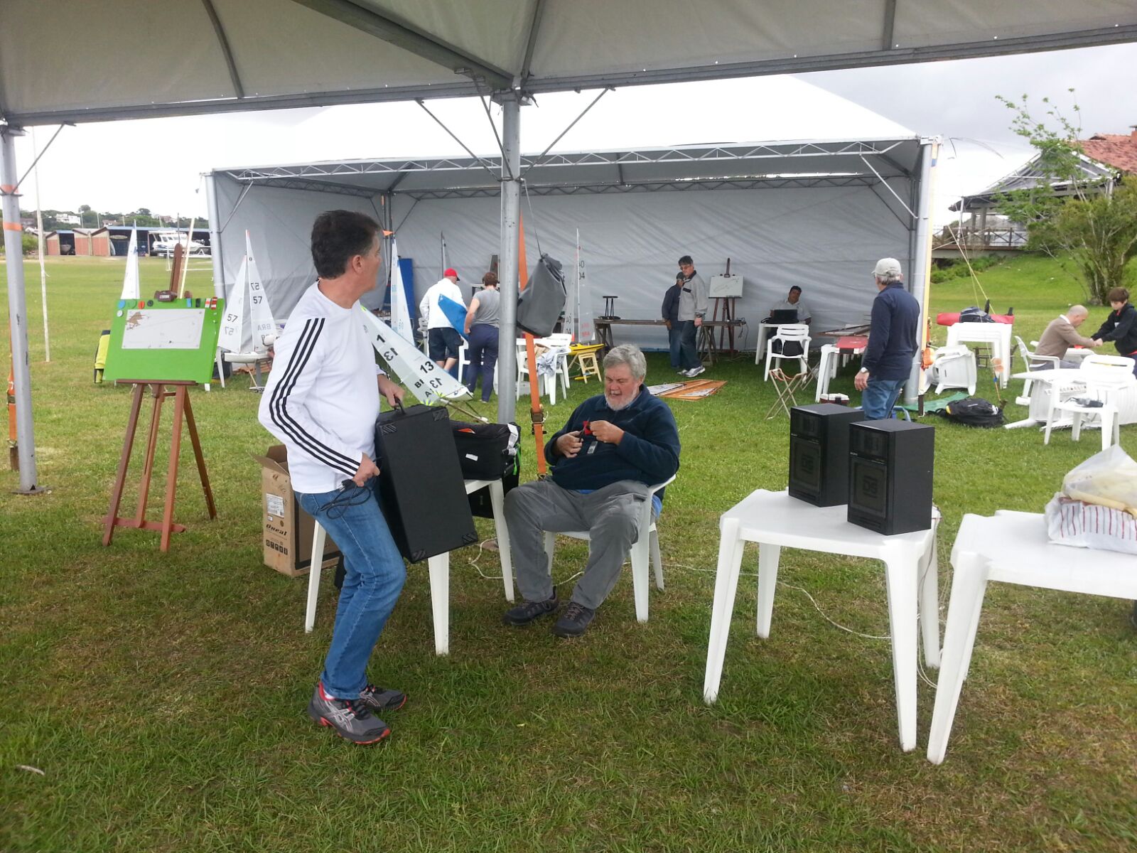 O dia começou com a finalização as 08:30 a confirmação da inscrição, verificação da documentação e medição dos barcos. Na sequência teremos (10:00 hs) reunião de comandantes, apresentação da Comissão de Regata, esclarecimentos das Instruções de Regata, percursos e etc. Acreditamos que em horário britânico às 10:30 hs teremos o inicio do procedimento e largada para a primeira bateria. O limite para o início do procedimento de largada para a última bateria do dia. (Será definido pela organização do evento em função das condições do dia) a principio está definido entre as 17:30 e 18:00 hs.
