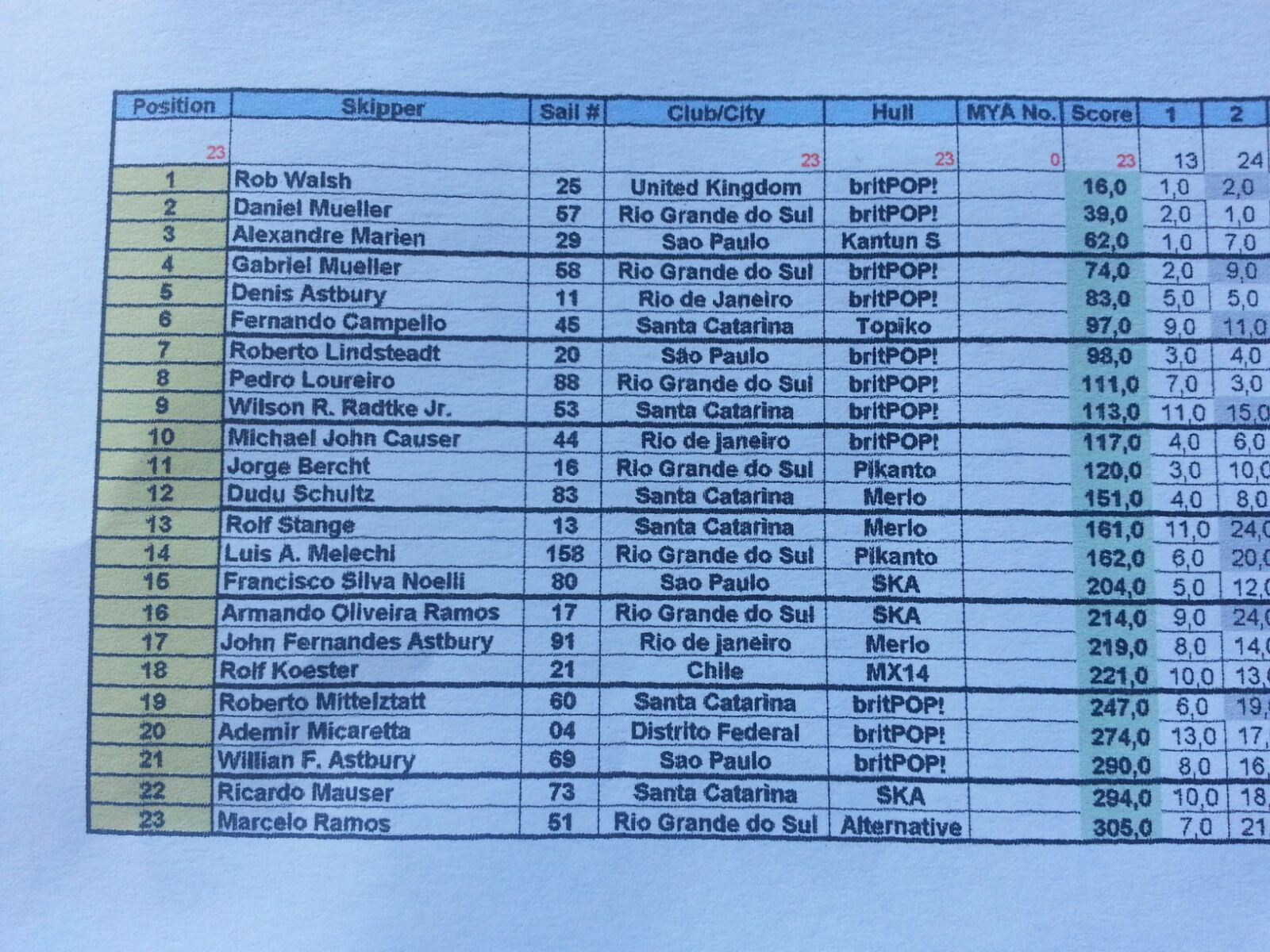 23 barcos de todas as partes do Brasil,um representante do Chile e nada mais nada menos que o atual campeão inglês e ex campeão mundial, Rob Walsh estiveram presentes.