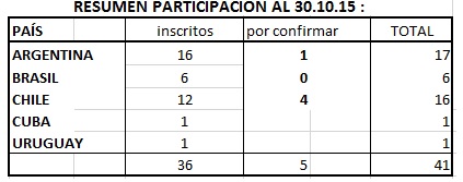 Chega-nos através do Secretário Geral da ABVRC Sr. William Astbury a re-chamada chilena para os velejadores interessados chilenos, que se aplica aos brasileiros. Temos a grata satisfação de ver duas novas sementes da classe crescendo em outros países, a participação da flotilha representante do Uruguai e um velejador Cubano, acreditamos que no futuro tenhamos uma maior quantidade de veleiros na raias. Abaixo temos a tabela de inscritos e confirmados que estarão abrilhantando mais um evento internacional da classe 1Metro ULY…. Caso venha se confirmar, este evento será o recebeu mais inscrições confirmadas, de todas as edições realizadas até hoje.