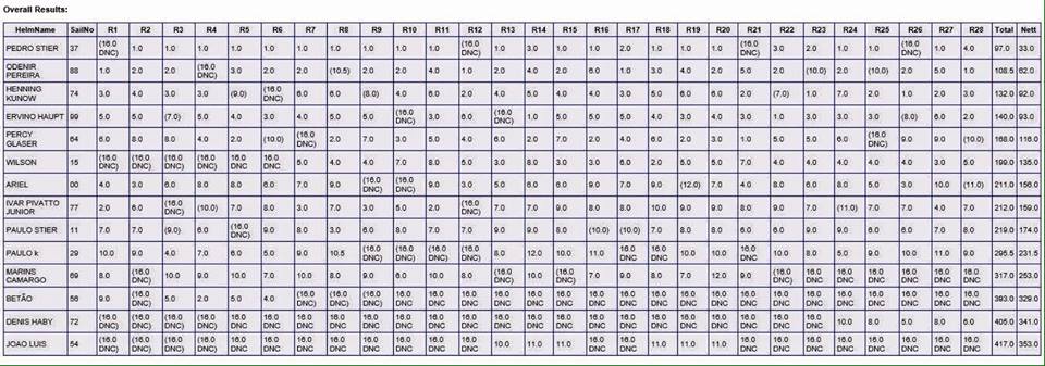 No dia 27/02 passado foi realizada as margens do lago Bacaheri a Regata ITC para veleiros da classe RG65. O evento reuniu velejadores dos estado do Paraná (12) e Santa Catarina(04) em uma regata ao que nos parece uma regata treino, haja vista que na regata passada em Barra Velha tivemos muitas baixas em virtude do vento forte mesclado com a água salgada, e ao que nos parece esta foi abrilhantada com boas velejadas sem maiores problemas. Veja o resultado e fotos abaixo……