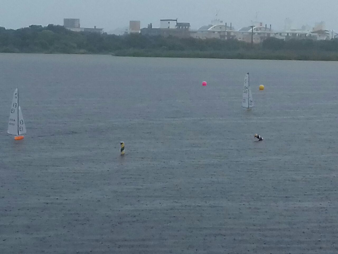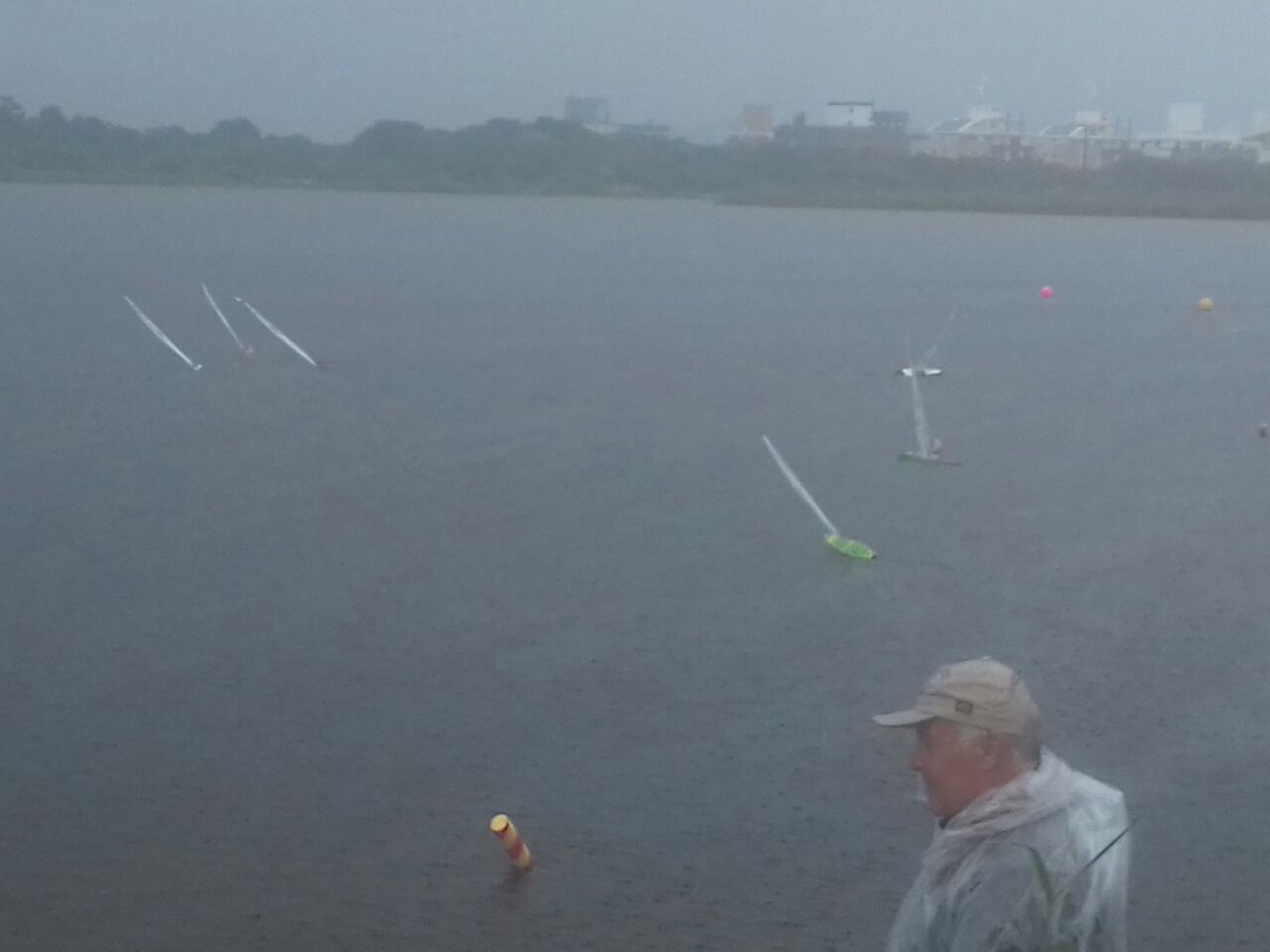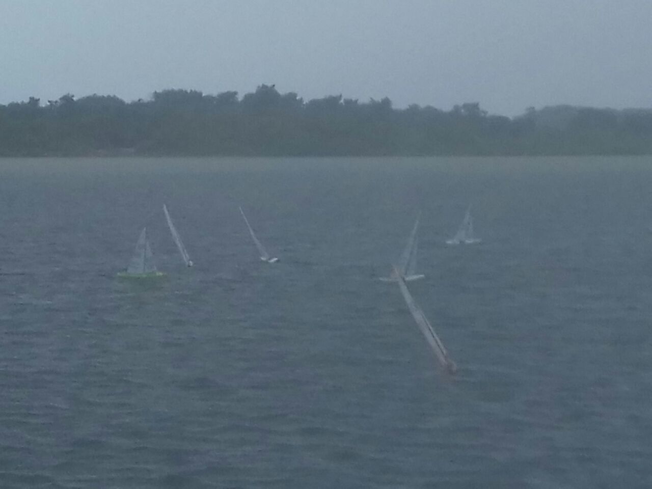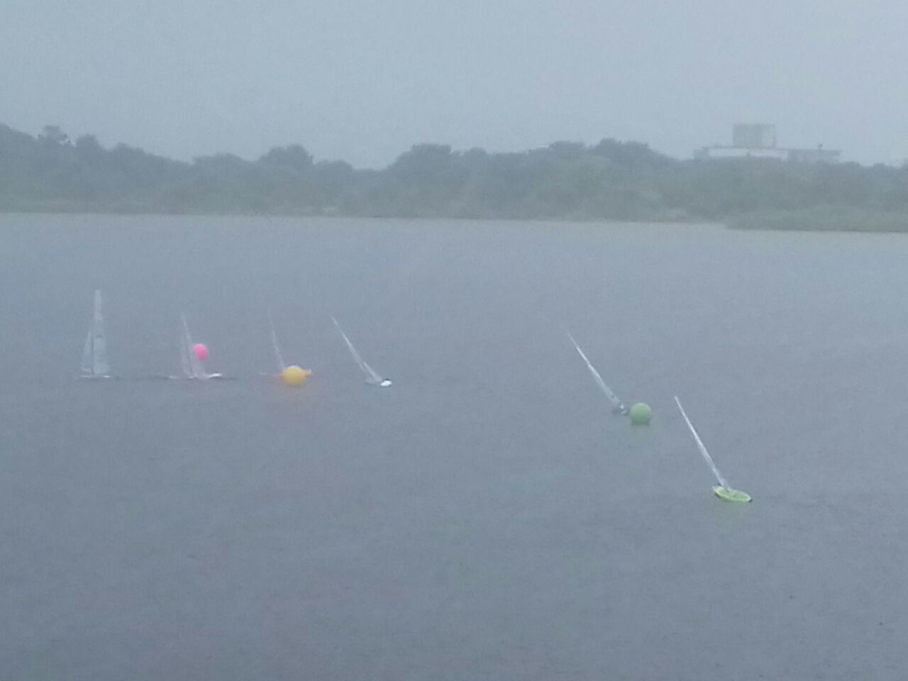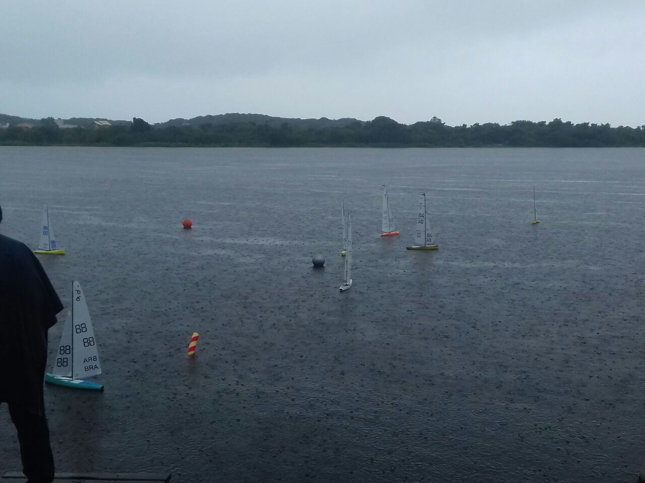 A chuva intensa e continua perdurou durante todo o dia do evento prejudicando muito o transcorrer das regatas, e por conta disso, varias tentativas de largada caíram no insucesso, as regatas que largaram que enfrentar ventos com variação de 8 a 20 nós no percurso, por conta disto, tivemos apenas 4 regatas disputadas neste primeiro dia de competição.