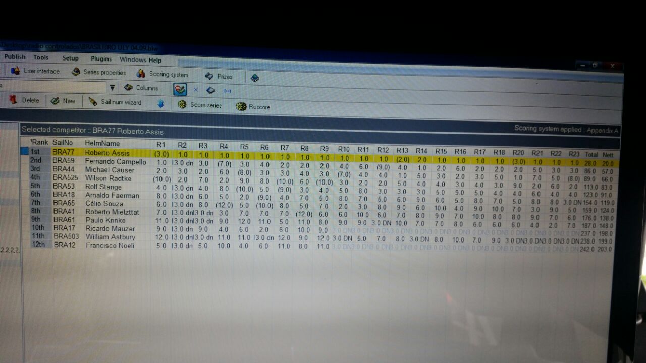 Os grandes destaques: O Campeão inconteste foi Roberto Assis BRA 77, liderou 18 regatas da 23 disputadas, chegou com uma sobra de 37 pontos a frete do Vice-Campeão Fernando Campelo BRA 59, Fernando sempre velejou entre os três primeiros colocados e em algumas regatas chegou a ter resultados abaixo de sua média, O terceiro colocado John Michael Causer BRA 44, tinha um barco muito veloz, acredito que até superior ao do campeão, Michael aproveitou disto e colocou seu ULY entre os primeiros colocados.