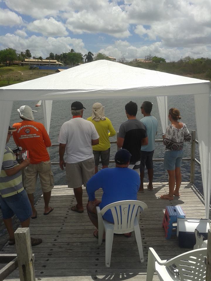 Todos se esmeraram para montar a estrutura, localizar boias, montar gazebo, barco de apoio e fomos aos treinos, lançando os barcos com uma engenhoca legal feita por Edmilson…