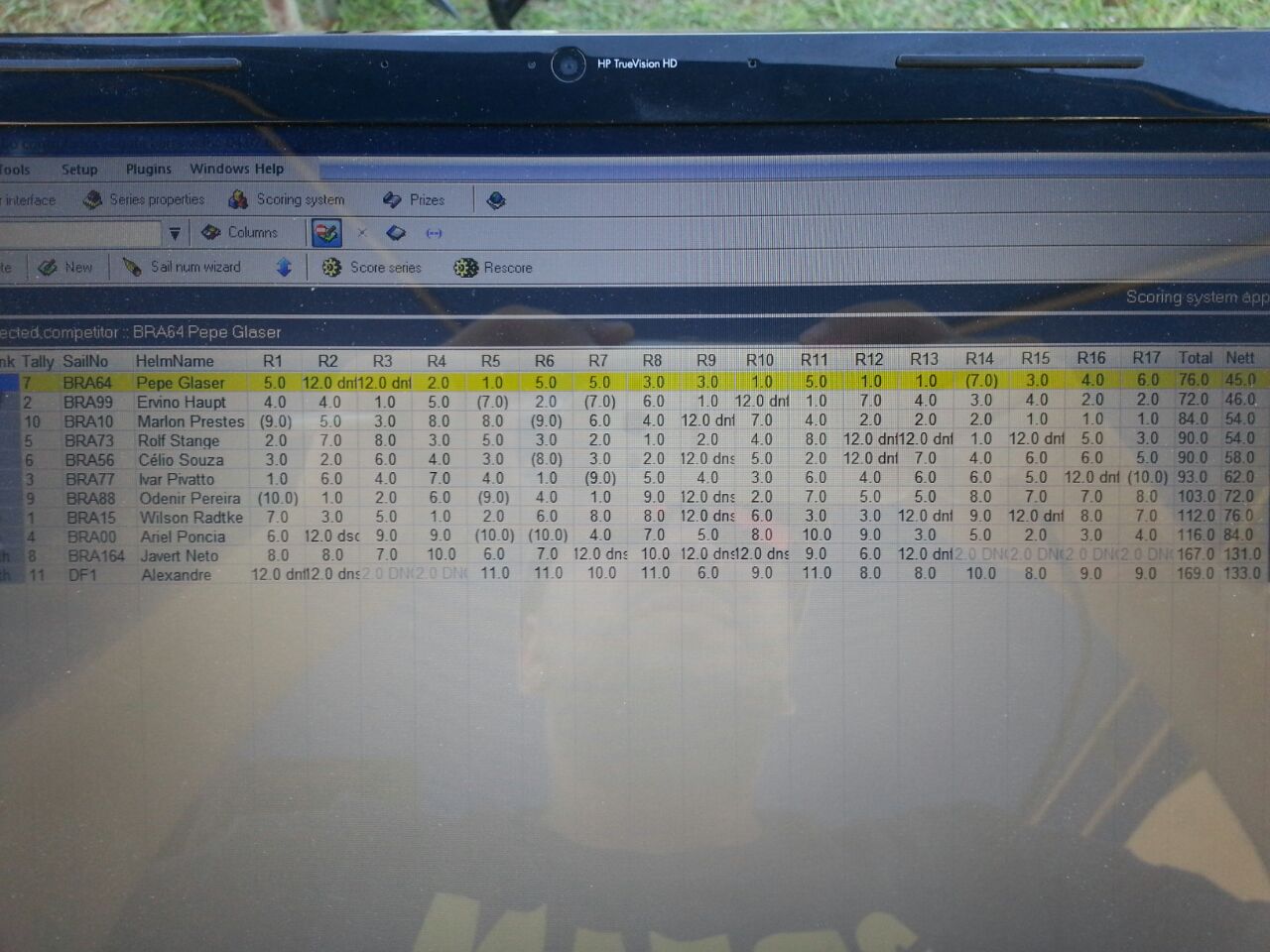O velejador Percy Glaser “PEPE” (BRA 64) pertencente a flotilha ITC de Curitiba/PR, foi o grande campeão deste evento. Sua participação e colocação é inconteste, pois colocou-se em primeiro lugar em 4 das 17 regatas disputadas. O vice-campeão foi Ervino Haupt Junior (BRA 99) do ITC, não menos importantes, pois venceu 3 regatas no geral, ficando a 1 ponto de diferença do campeão.
