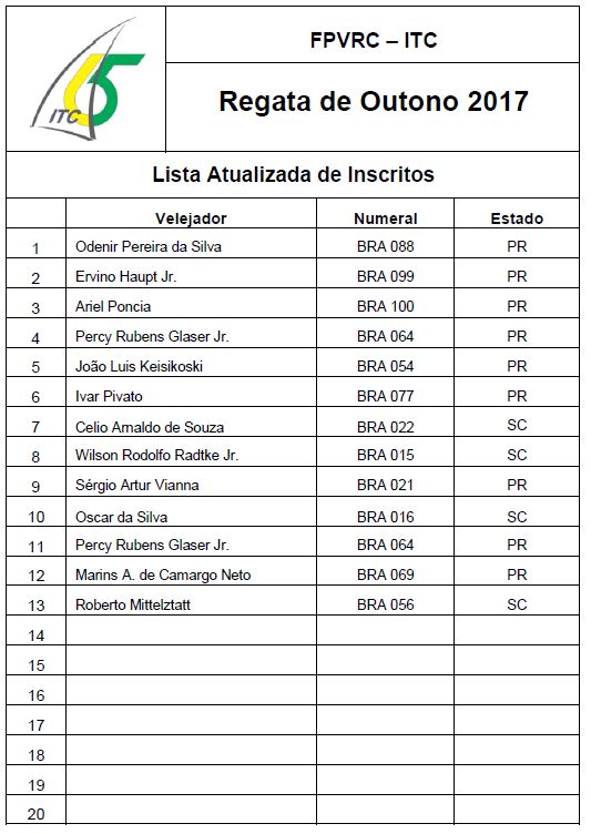 Não esqueça de por o seu nome na lista? A organização convida a todos os velejadores da Classe RG65 a participarem de mais um evento regional que se realizará no Parque Bacacheri. Inscreva-se já!!! Vamos juntos treinar para o Brasileiro da classe!!!