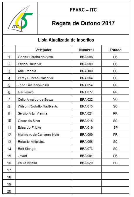 Não esqueça de por o seu nome na lista? A organização convida a todos os velejadores da Classe RG65 a participarem de mais um evento regional que se realizará no Parque Bacacheri. Inscreva-se já!!! Vamos juntos treinar para o Sul-Americano da classe!!!
