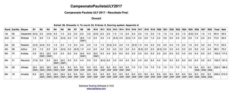 Contou com presença de 8 competidores, sendo 1 do estado do Rio de janeiro. Foram corridas 28 regatas, ao final sagrou-se campeão o velejador Alexandre Marien BRA 6, seguido pelo vice campeão Michael Causer BRA 44, e em terceiro Roberto Lindstaedt BRA20.