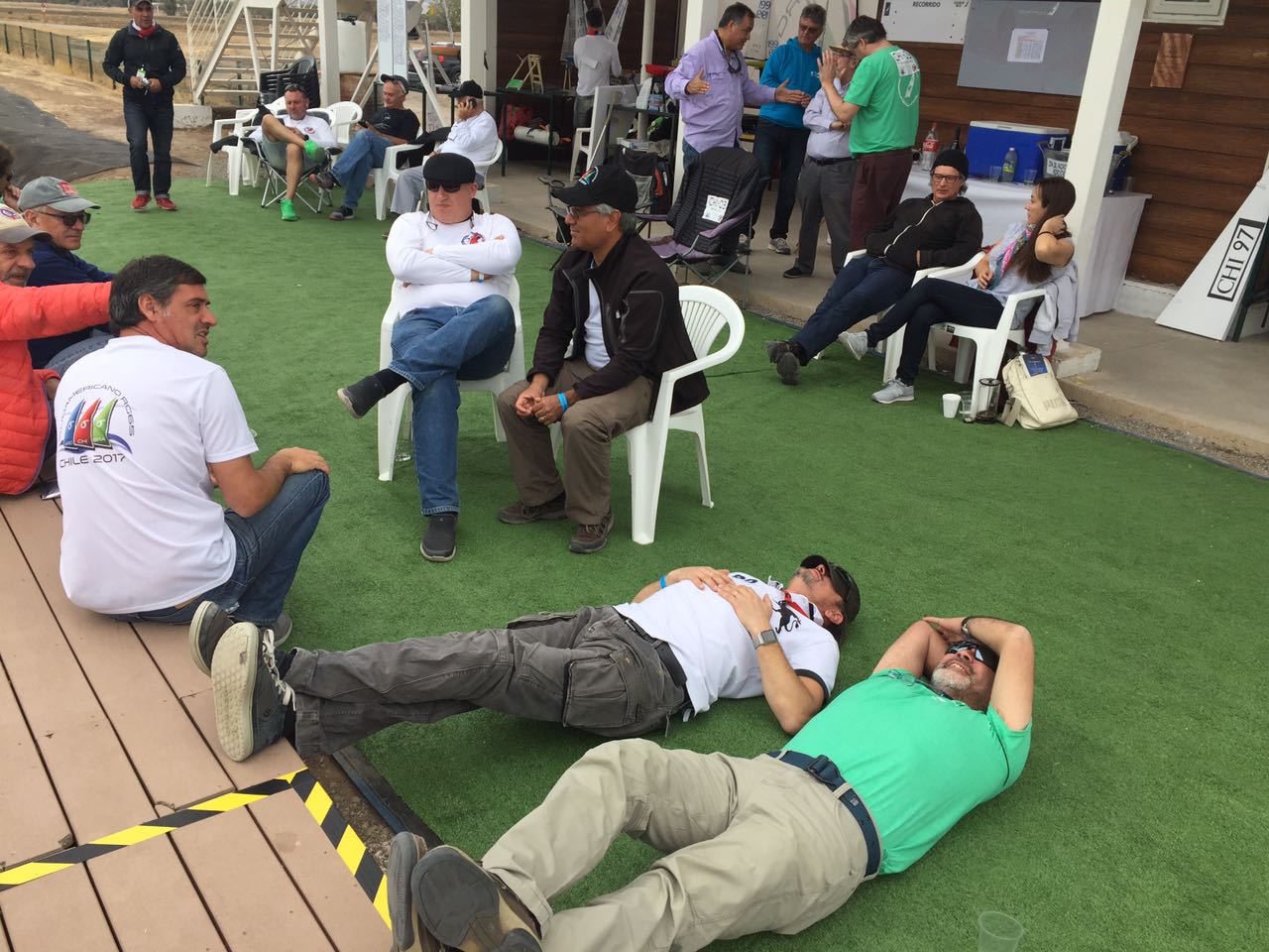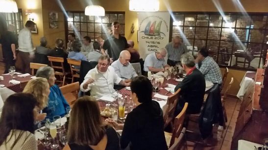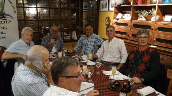 O segundo dia de regatas não aconteceu, pois o vento que ontem foi muito bom, hoje não apareceu até ao final da tarde. Continuamos amanhã com a esperança de bons ventos… Mas nem tudo está perdido, aproveitou-se a dia que sobrava para uma reunião da classe, assuntos diversos foi a tônica. Ao final do dia fechando com chave de ouro, foi servido a noite um grande jantar de confraternização.