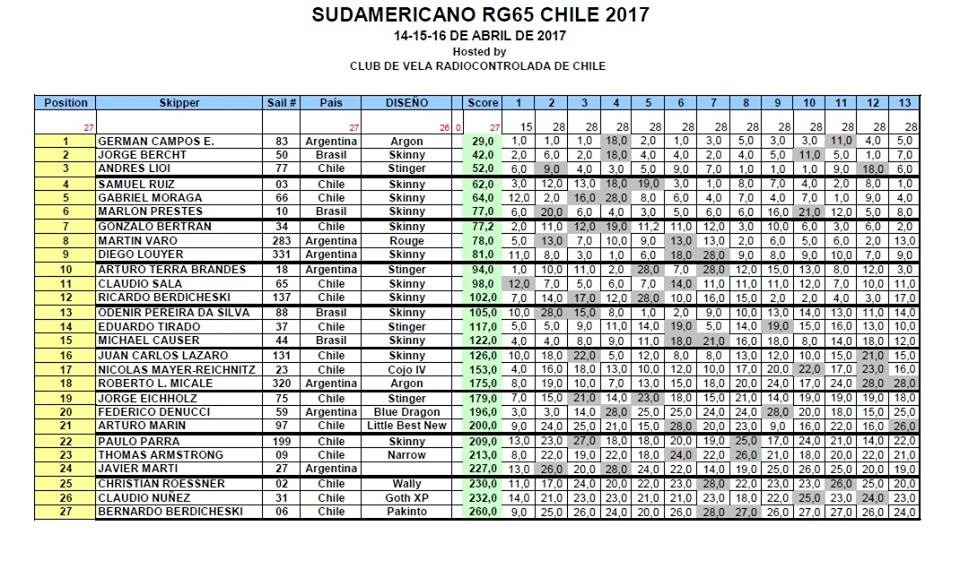 Como organizadores não podemos estar mais satisfeitos do Campeonato Sul-americano rg65 Chile 2017 que decorreu entre os dias 14, 15 e 16 de abril no clube de aviões de aeromodelismo de Chile.