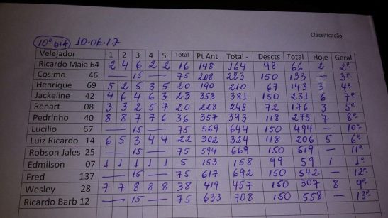 Edmilson Alcantara Duque da Silva BRA 7, sagra-se campeão do semestre após 10 etapas, lembrado que o velejador levantou a taça no ano passado velejando o mesmo Skinny.