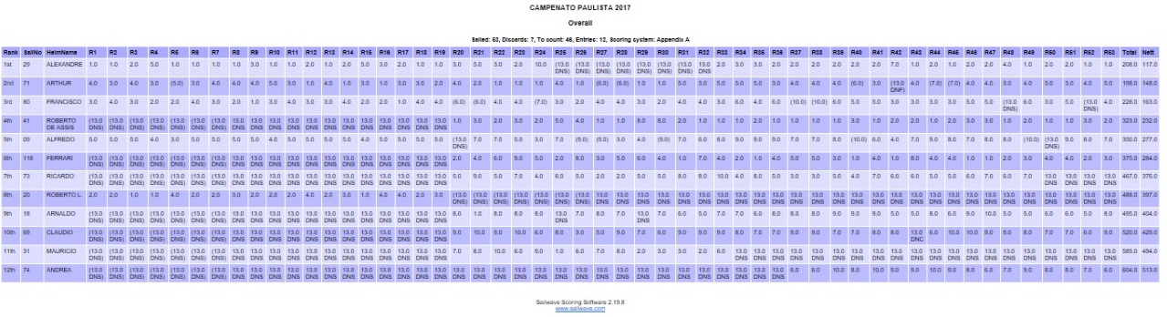 Este campeonato foi realizado em duas etapas, a primeira foi realizada em Ubatuba, nesta o campeão foi Alexandre Marien BRA 29, a segunda etapa foi realizada em Embu das Artes e campeão foi Roberto Assis BRA 41. Somado as duas etapa o campeão paulista de 2017 na classe IOM foi Alexandre Marien.