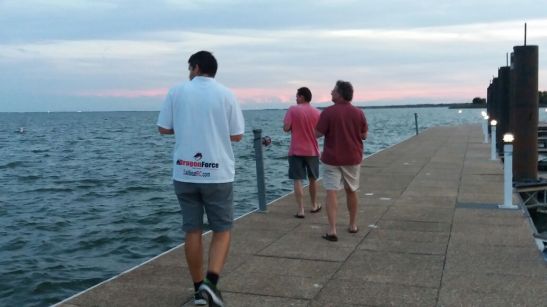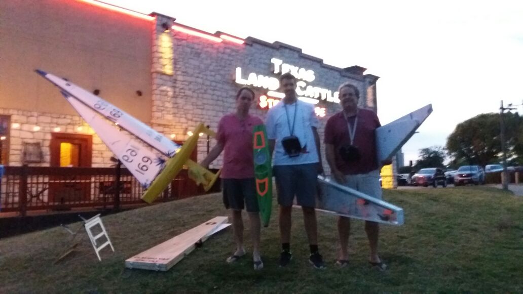 Nossos representantes Denis Astbury (BRA11) e Claudio Vaz (BRA69) em seus primeiros momentos em terras norte americanas, montagem de barcos, medições, conhecendo a raia e revendo os velejadores estrangeiros que já tiveram no Brasil.