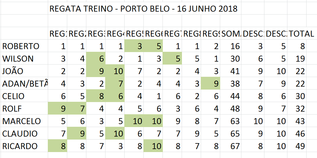Um sábado de vento fraco com a presença de 10 velejadores que disputaram 9 regatas no período da tarde, mais uma vez contamos com o empenho no socorro e montagem de boias do velejador Robertinho.