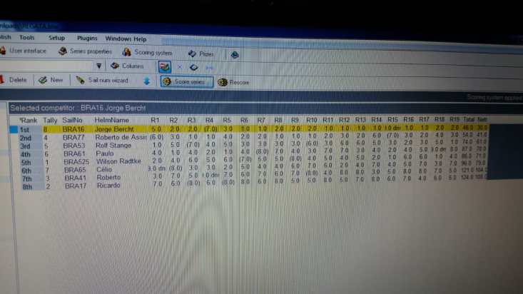No primeiro dia notamos a ausência do velejador João de Deus e no segundo dia mesmo estado entre as primeiras colocações aconteceu o abandono por parte dos velejadores Roberto Assis BRA 77 e Paulo Krinke BRA 61.