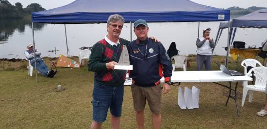 O campeão Jorge Bercht – BRA 50 a esquerda, e a sua direita Percy Glaser Coordenador da Classe RG65.