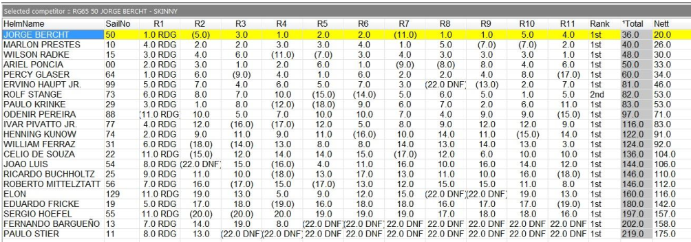 O campeonato Parananense de Rádio Controle da classe RG 65 foi realizado neste final de semana na represa do Piraquara. Ao todo, 21 barcos representando os estados do PR, SC e RS. Todas as regatas foram muito disputadas devido ao alto nível dos competidores. Até a última regata, poucos pontos separavam os ponteiros. Destaque para o gaúcho Jorge Bercht que venceu o torneio, seguido do Marlon (PR ) e Wilson (SC ). O ITC vem agregando novos velejadores, e com isso, evoluindo o índice técnico do grupo. Parabenizamos a todos os envolvidos na organização do evento, mas especialmente ao Odenir, Percy, Ervino e Ivar.