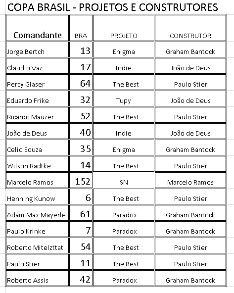 Veja abaixo o resultado após corridas 67 regatas e colocações finais.