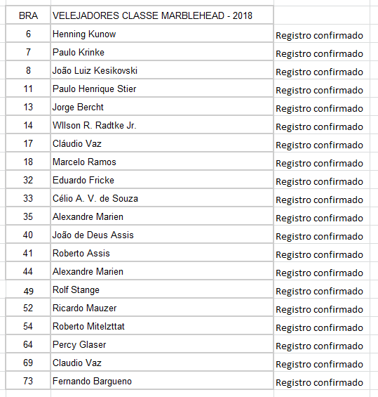 - Objetivando a reativação da ABCM – Associação Brasileira da Classe Marblehead , solicitamos aos velejadores constantes da listagem abaixo que confirmem seu interesse pelo numeral indicado, alertamos que este é o momento de troca e confirmação para o não de 2019, e que a confirmação de uso deste numeral está condicionada ao pagamento da taxa de numeral anual.