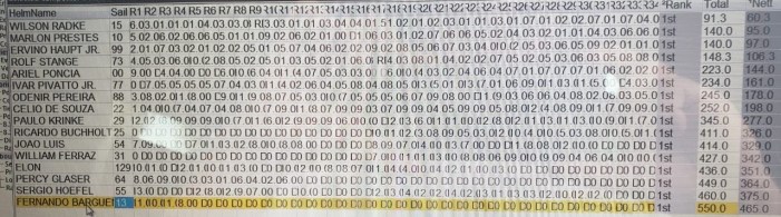 Brilhou a estrela do bom velejador Wilson Radtke BRA15 pois sagrou-se campeão da primeira etapa deste evento, seu desempenho eficaz, pois chegou em primeiro lugar em 13 das 33 regatas disputadas, ao nosso Campeão Wilson nossos parabéns pela conquista! Que de fato, de direito os méritos pela conquista e trajetória com “fairplay”.