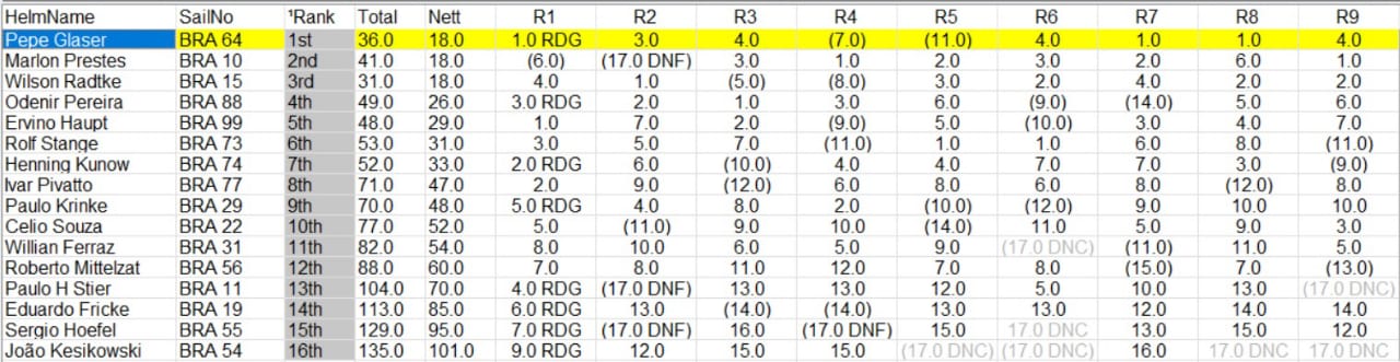 Destaque para a concentração do velejador Pepe Glaser BRA 64, foi impecável nas velejadas em ventos fortes, consistente, sem problemas de rádio ou outro qualquer, deram ao velejador a segurança de tocadas leves em ventos fortes. Vale a pena ressaltar que o conjunto veleiro comandante estava afinado.