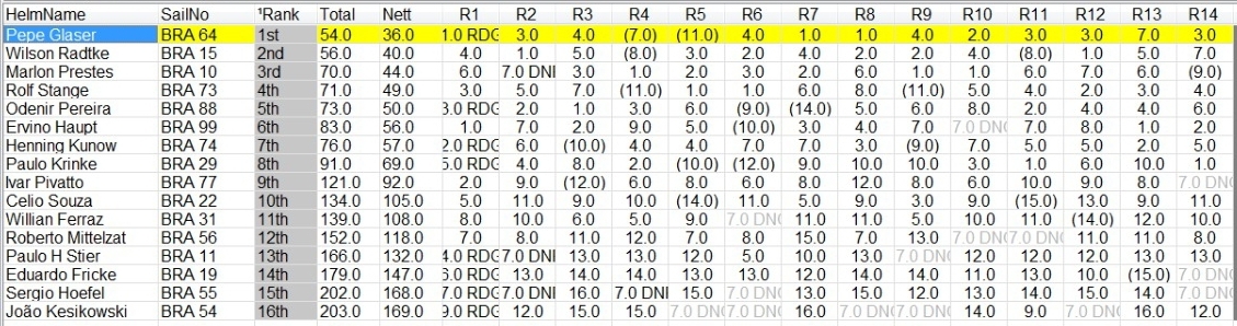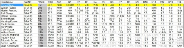 O campeão dos campeões Wilson Radtke BRA 15, vencedor da primeira etapa da copa, acumulando 91,3 pp, e segundo colocado ao final desta 2ª etapa com 40 pp, totalizou 100,3 pontos perdidos.