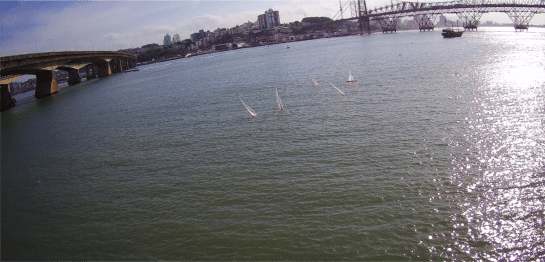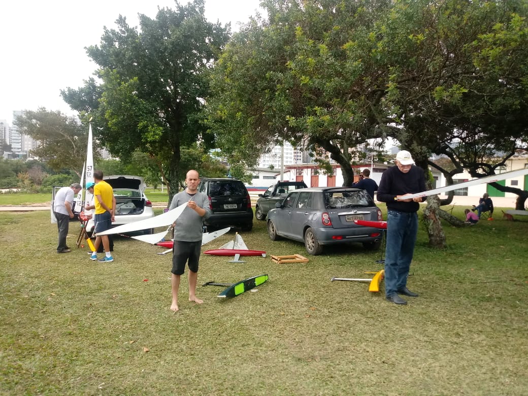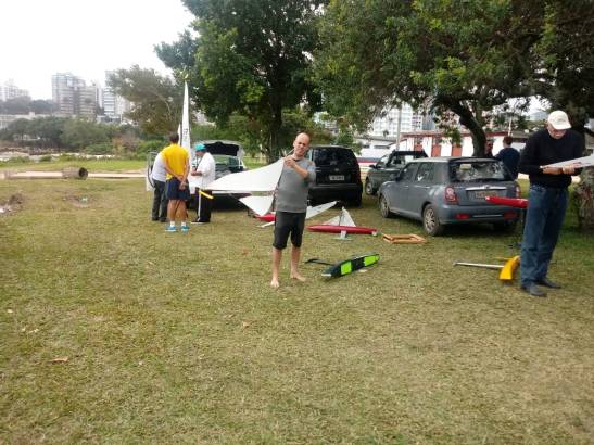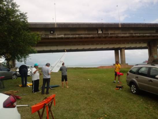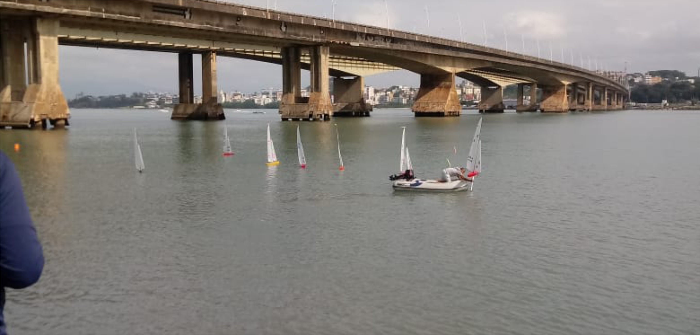 Neste domingo 21 de Julho estivemos reunidos em Florianópolis no Clube Náutico Francisco Martinelli, foi um encontro de velejadores dedicados e envolvidos com o crescimento da classe, bem como à busca de novos locais para a prática da modalidade, no início do encontro por volta de 10:30 fomos prejudicados pela maré baixa em virtude de nossas atuais quilhas, caso resolvido o nosso barqueiro salva barcos levou todos os nossos veleiros em local de calado, realizamos 5 regatas e fomos ao churipão ( espetinho misto com pão) assado e servido quentinho no local, a propósito agradecemos ao Eduardo Rodrigues e família, bem como em especial ao Marcelo que preparou todas as boias e pinos de largada, pelo envolvimento na realização do evento. Após almoço já tinha calado no pontão, viria a facilitar o acesso a água e ao nosso contato com o veleiro e regulagens. Os ventos no local sofreram a influência da ponte Hercílio Luz, aliada a maré que enchia que somente era sentida quando vento era fraco. Foi um encontro bastante salutar e aglutinador, esperamos novos eventos nesta região.