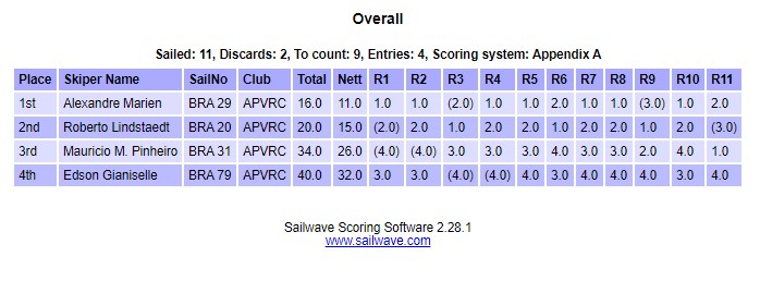 Aconteceu no dia 07 de março no lago do Parque Francisco Rizzo em Embu das Artes a Primeira Etapa do Ranking Paulista, teve como campeão da etapa o velejador Alexandre Marien, a segunda etapa deve acontecer no mesmo local em 25 de abril.