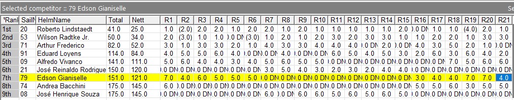 Resultado final após 21 regatas: