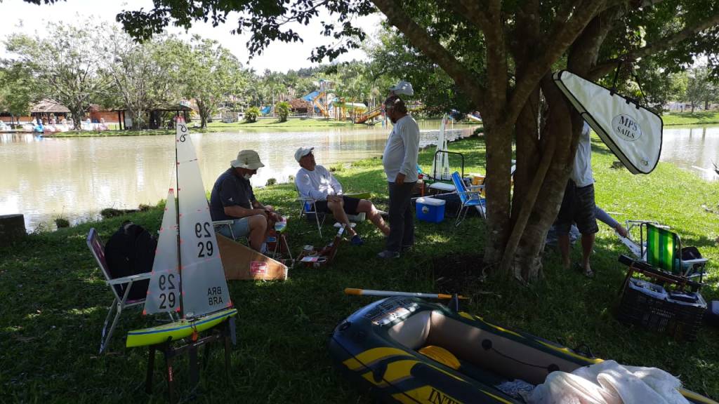 Neste sábado 10 de outubro 15 velejadores da classe RG65 estiveram reunidos no Parque Aquático Tironi na cidade de Piçarras em Santa Catarina, um local com uma excelente estrutura de apoio e bons lagos, um dia que se iniciou ensolarado brilhando durante todo dia, inciamos nossas regatas por volta de 11:00 horas, com uma parada para lanche, realizamos 16 regatas sob ventos que variavam entre 8 e 12 nós.