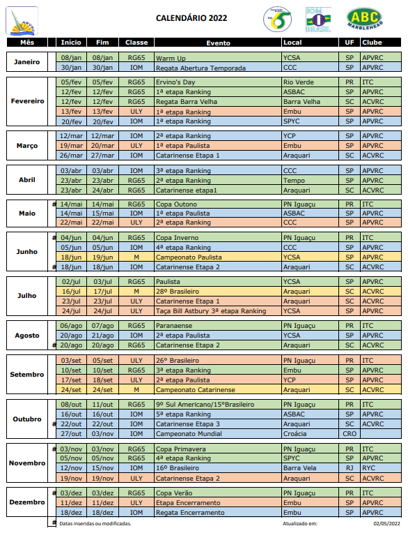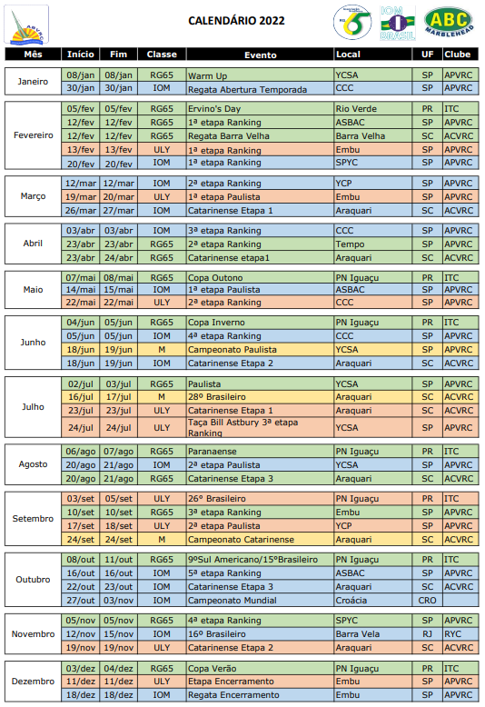 Calendário Brasileiro de eventos da classe Vela Rádio Controlada.