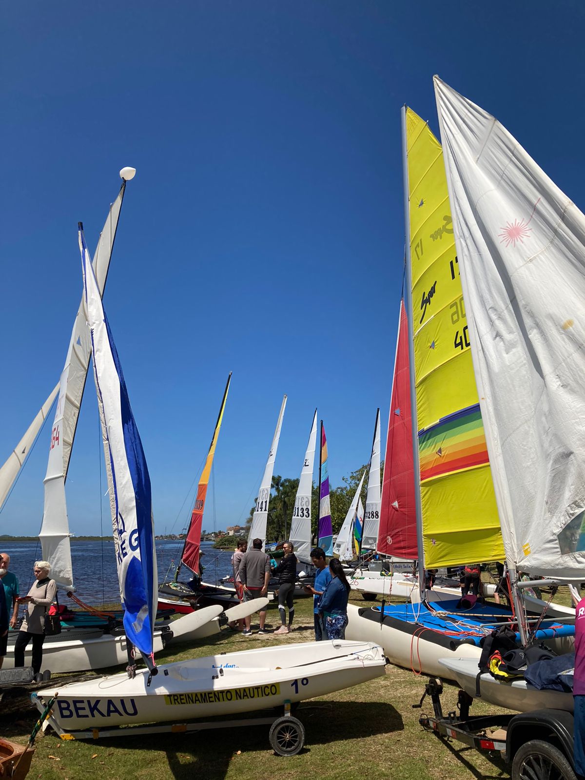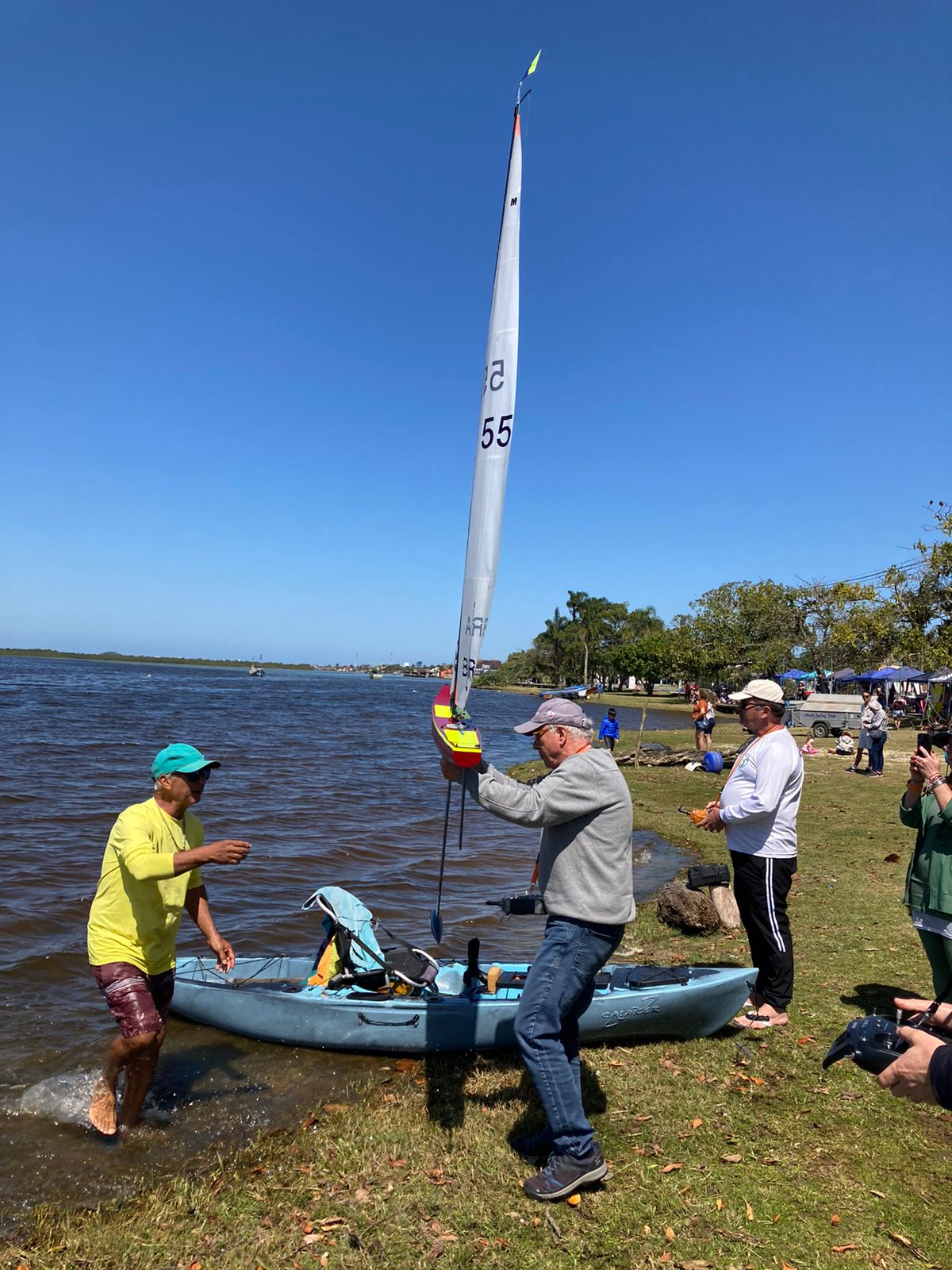 Aconteceu nos dias 24 e 25 setembro durante a realização da 9º Regata da Lagoa de Barra do Sul, presentes ao evento 9 velejadores representando as cidades Araquari, Blumenau, Bombinhas, Curitiba, Joinville, Navegantes, foram dois dias distintos em que foram realizadas 23 regatas, sábado muito sol, bons ventos do quadrante sudeste de 12 nós, o que propiciou a realização de 18 regatas; Já no domingo somente 5 regatas, o tempo mudou para nublado com chuviscos intermitentes, todos prontos para navegar às 10:00 horas, neste intervalo forçado aproveitamos para saborear a costela do Polaco, o vento tímido somente apareceu por volta de 13:30 horas, ainda fraco para lutar contra a maré enchente que levava os barco em direção ao fim da lagoa, mesmo travando uma luta contra a natureza conseguimos realizar 5 regatas, finalizamos as 15:00 horas, logo após o recebimento do resultado final compilado a distância pelo velejador Marlon, realizamos a entrega de prêmios aos vencedores e Fairplay’s Sergio Hoefel e Eduardo Fricke, pelos representante da PM Barra do Sul e Kiko Dienner representando a AVSC…