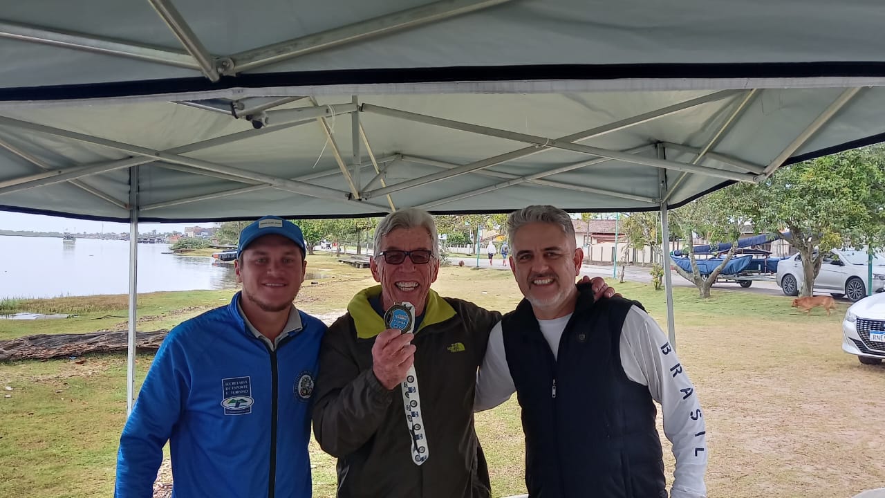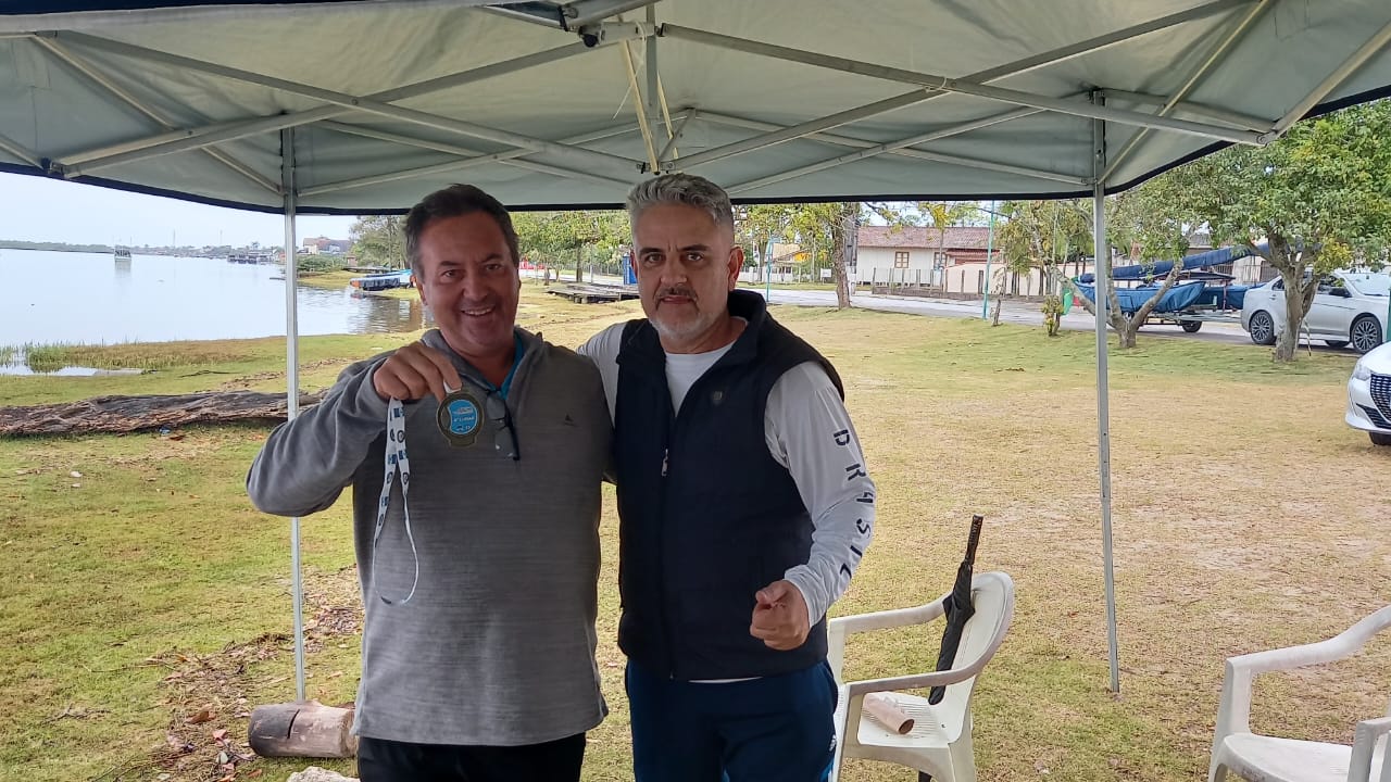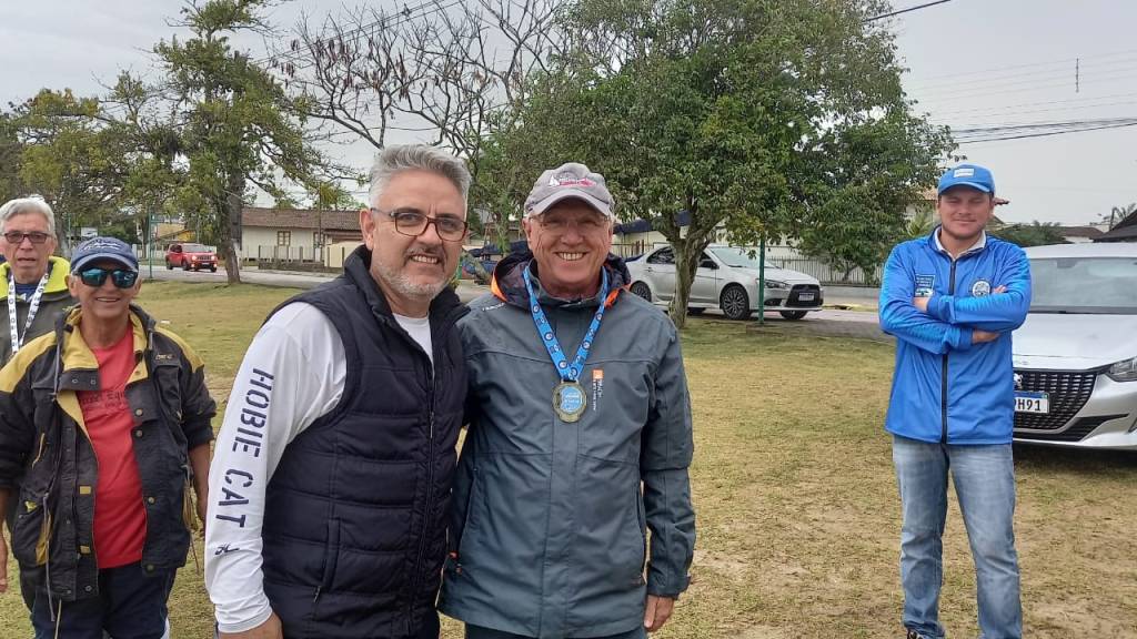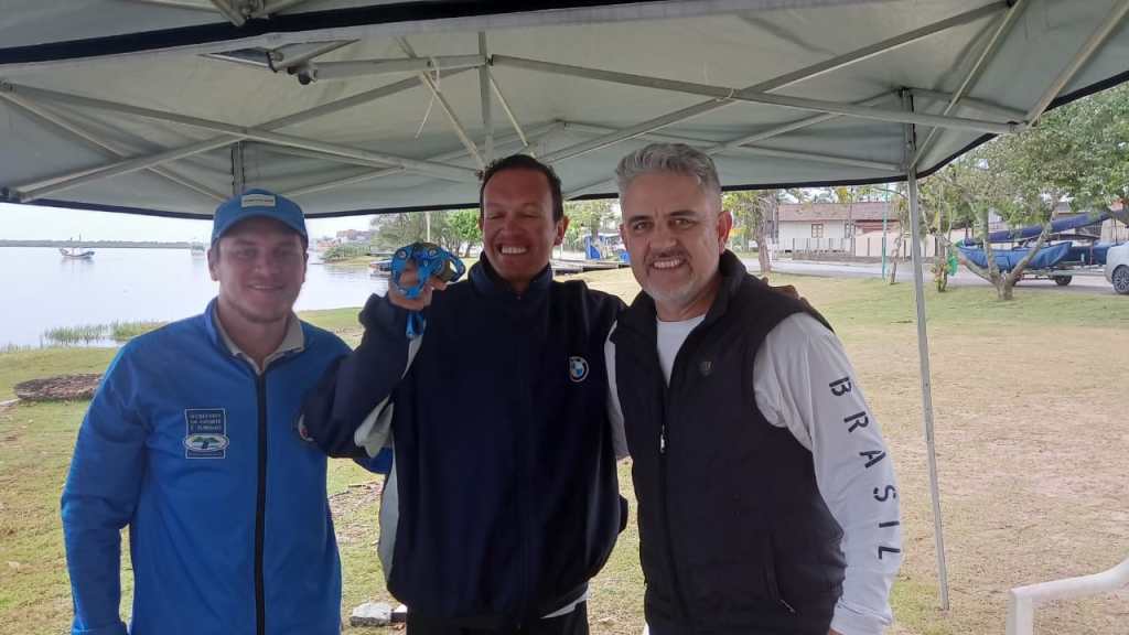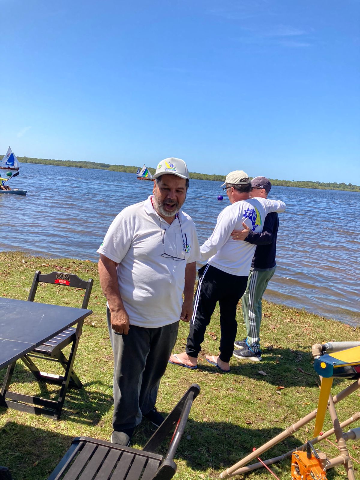 A presença do Sr. Sergio Hoefel Presidente e seu Vice Ervino Haupt da FEIP – Federação de Iatismo do Estado do Paraná velejando seus RCs classe M.