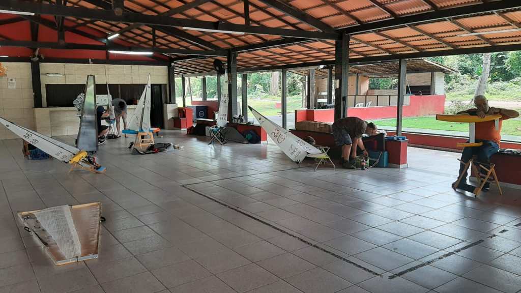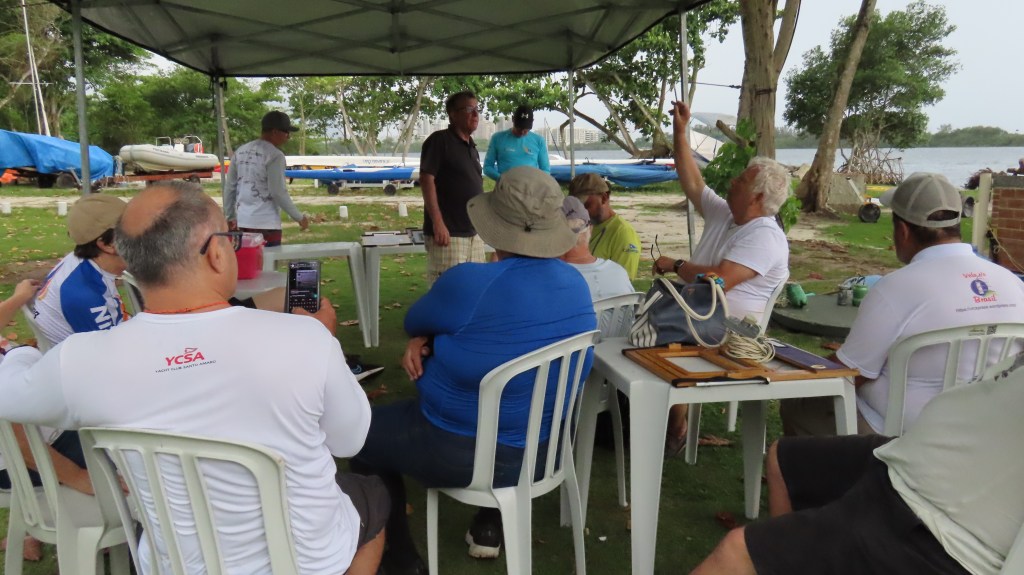 Terça 15/11, um dia diferente, onde o vento fraco imperava após o horário determinado para o início das regatas, não havia força acima de 3 nós para realização das regatas, depois de um longo tempo de espera a primeira regata foi realizada, na eminência da largada para a segunda regata esta foi cancelada, após seguimos para o almoço, às 13:30 voltamos e ainda com ventos fracos, retomamos as regatas e a medida em que o os minutos passavam o tempo foi virando e chegamos ao limite da vela “A”, como consequência algumas avarias, o que veio a cooperar para diminuir o número de velejadores nas regatas finais.