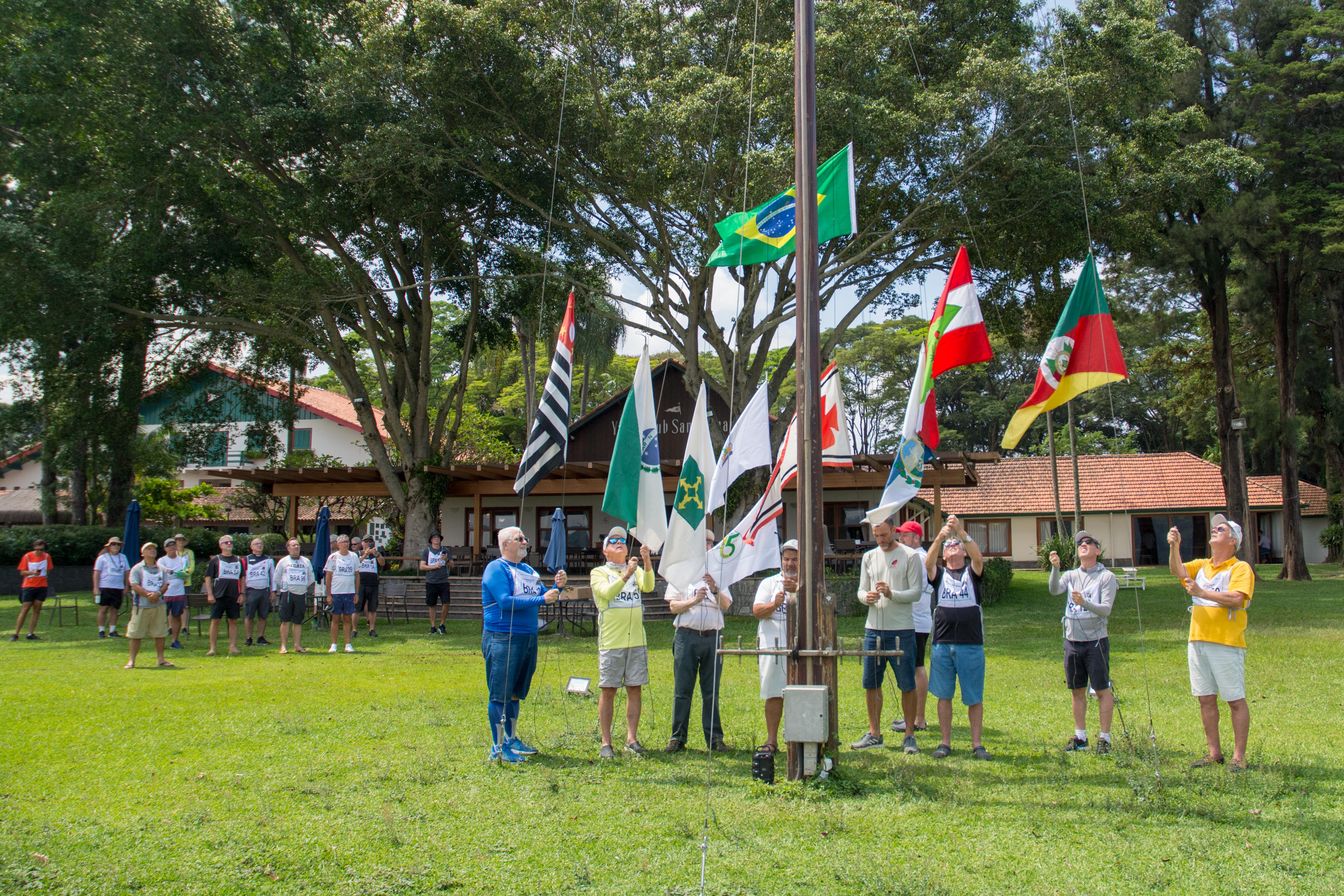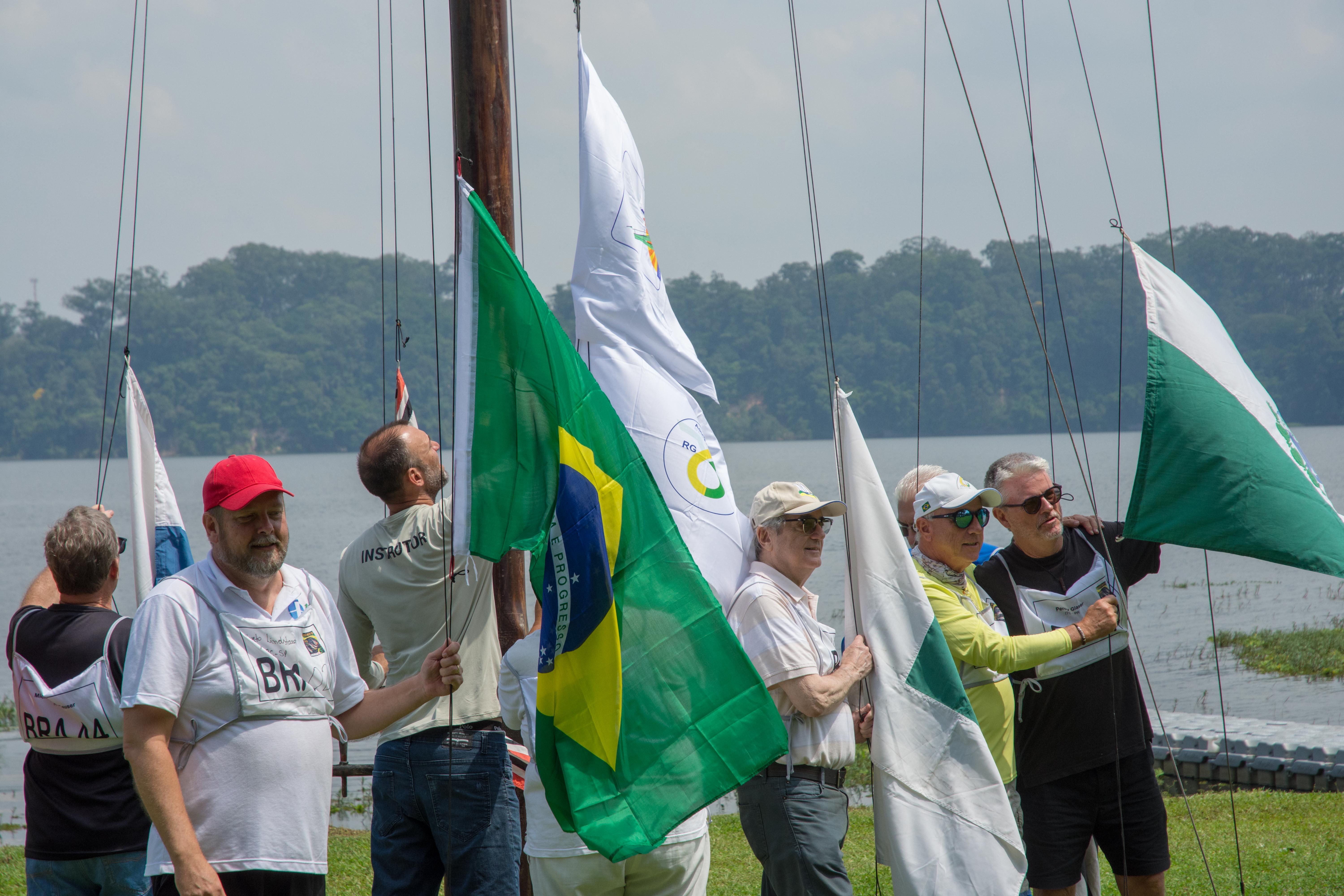 Às 10:40 horas iniciamos a Cerimônia de abertura como hasteamento das bandeiras do clube anfitrião, dos estados participantes, do Brasil e das associações ABVRC e ABCRG65 sob a execução do hino Nacional Brasileiro.