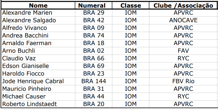 A BRA-RGS Clássicos e a IOM – International One Metre Class, de veleiros rádio controlados, passam a integrar, junto com a ORC, BRA-RGS, Bico de Proa, Multicasco e HPE25, as classes convidadas a participar do evento.