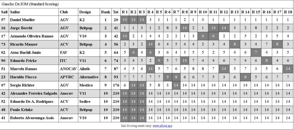 Neste fim de semana ( 30/01 outubro) em dois dias emocionantes, aconteceu o Campeonato Gaúcho de Vela RC – Classe IOM, um evento que prometeu, e trouxe muita emoção e rivalidade saudável às águas de nosso querido Guaíba. O Gaúcho de vela RC foi um campeonato que reuniu equipes não só do nosso amado estado, mas também de Santa Catarina, Paraná e São Paulo, unindo forças e paixões pela Vela Rádio Controlada.