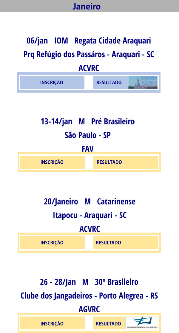 Eventos da vela rádio controlada que acontecem no mês de janeiro.