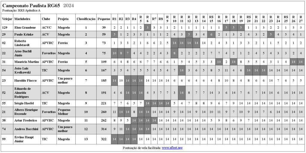No final de semana de 9 e 10 de março, a FAV, Flotilha Amigos da Vela, promoveu o Campeonato Paulista da Classe RG65 no YCSA, Yacht Clube Santo Amaro, com 13 velejadores inscritos representando os Estados de SP, PR e SC.