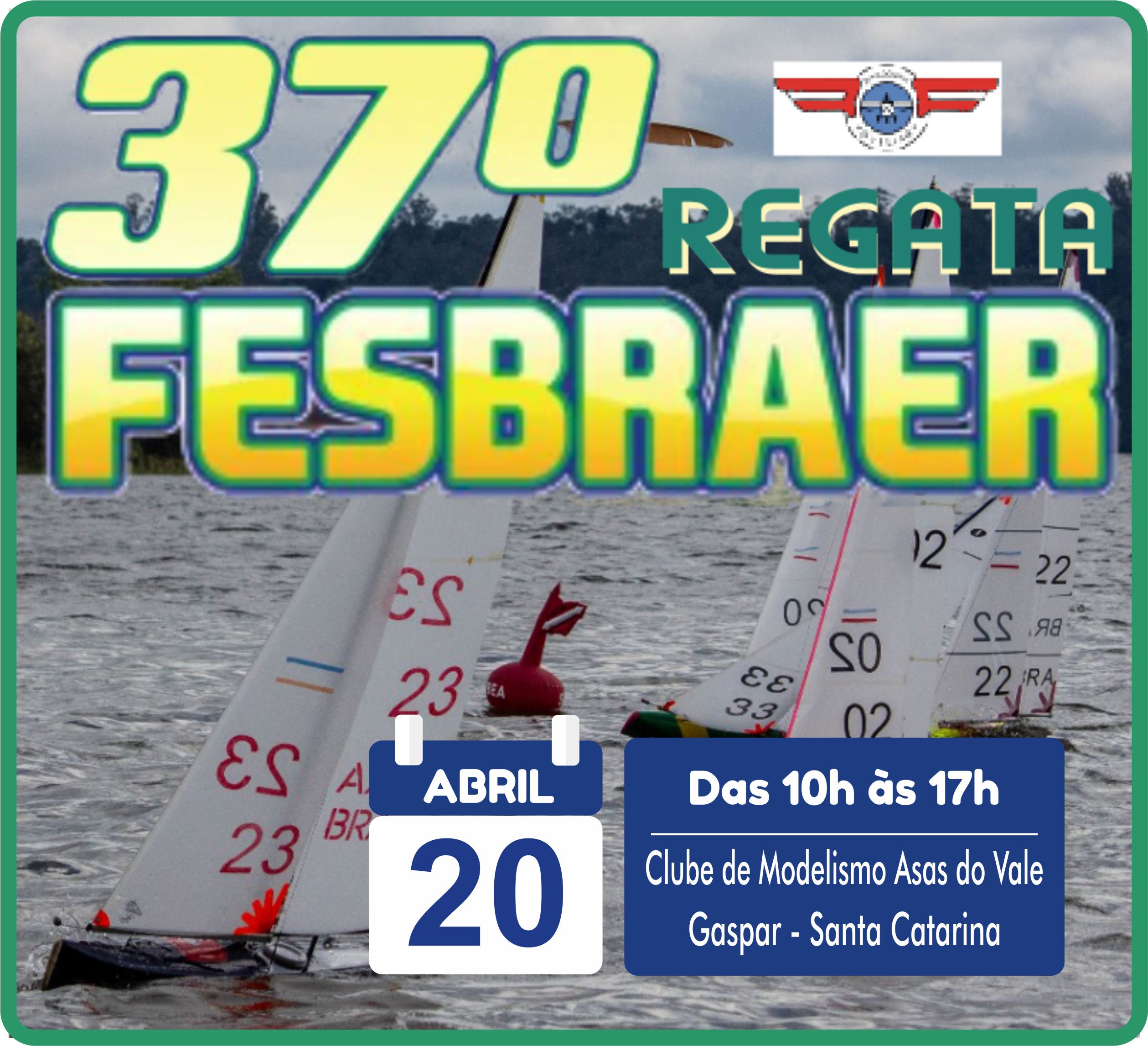 Regata: A 37ª edição da FESBRAER foi um sucesso tanto em participação quanto em interesse do público pela vela rádio controlada. O evento ocorreu no sábado, dia 20, como parte da FESBRAER, o maior evento de modelismo da América do Sul, que encantou e demonstrou habilidade ao longo de três dias, de 19 a 21 de abril, nas terras de Gaspar, Santa Catarina, sediado no Clube de Modelismo Asas do Vale. Dentre as diversas modalidades do modelismo representadas, a regata se destacou.