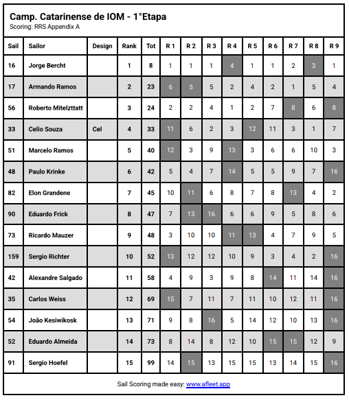 Chegamos ao final do Campeonato Catarinense da classe IOM.