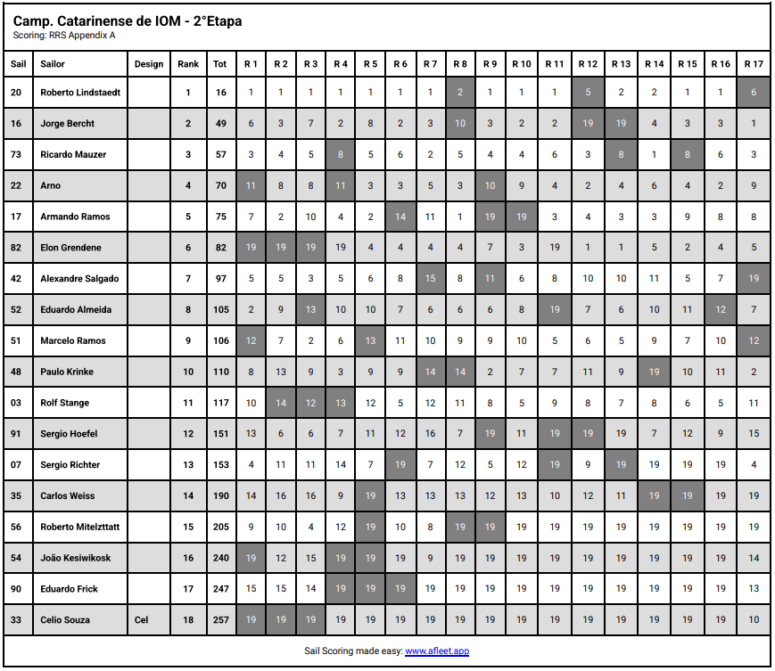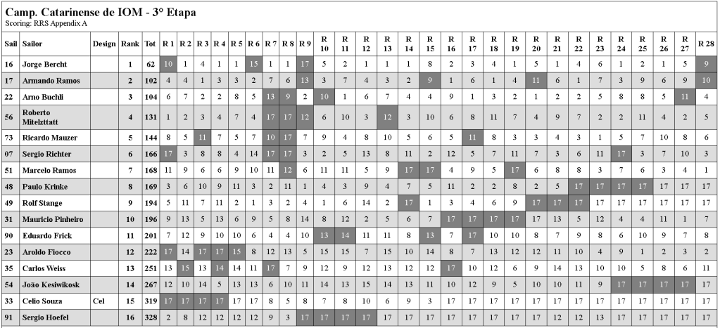 A cada etapa, a ACVRC trabalhou para repetir o sucesso de organização das edições anteriores, proporcionando aos competidores uma oportunidade valiosa de testar e ajustar seus equipamentos. Com foco no desempenho ideal em regata. Este campeonato catarinense trouxe a cada etapa novos desafios, oferecendo aos velejadores condições próximas daquelas que enfrentarão no campeonato, aprimorando ainda mais sua preparação para o grande encontro da classe, a maioria dos participantes, cerca de 99%, já confirmou presença no Campeonato Brasileiro da Classe IOM, que será realizado em novembro em Porto Alegre.