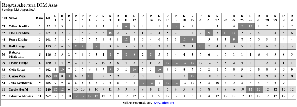 O grande vencedor foi o velejador Wilson Radtke (CMAV), seguido por Elon Grendene (ITC) em segundo e Paulo Krinke (ACVRC) em terceiro.