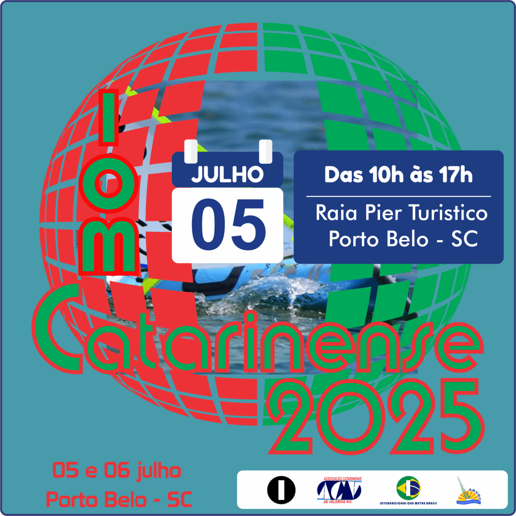 A ACVRC convida os velejadores da Classe IOM a participarem das regatas que ocorrerão nos dias 05 e 06 de julho de 2025, no Píer Turístico de Porto Belo, com o apoio da Prefeitura Municipal e da Fundação de Turismo e Desenvolvimento Econômico de Porto Belo.