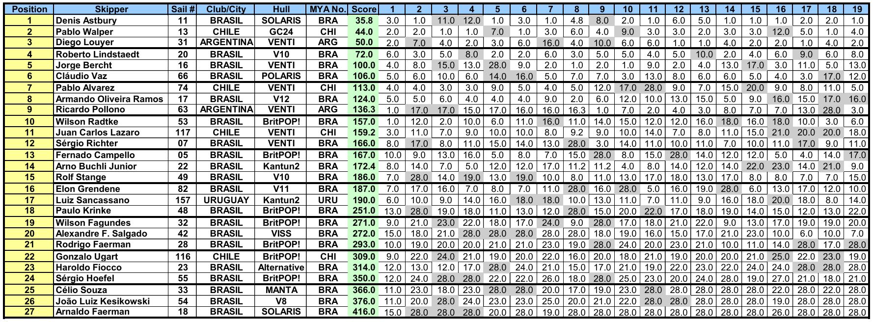 A aferição incluiu quilhas, lemes, baterias, mastreações A, B e C, além da verificação em tanque de flutuação. Ao todo, participaram da aferição os veleiros das equipes da Argentina (2 barcos), Chile (4), Uruguai (1) e Brasil (22), com representantes dos estados do Rio Grande do Sul (4), Santa Catarina (8), Paraná (2), Rio de Janeiro (2) e São Paulo (6).