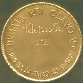 Em 1967, participei da Regata do Rei Olavo V (1967) e Santos-Rio (1968). Medalha recebida das mãos de Rei Olavo V da Noruega pela classificação com campeão classe B oceano velejando o veleiro Arpeje do capitão e timoneiro Jean Jacques.